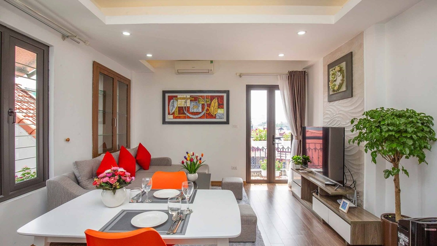 This bright apartment is located on Dao Tan street, just a few minute walking distance to Lotte Center Hanoi.