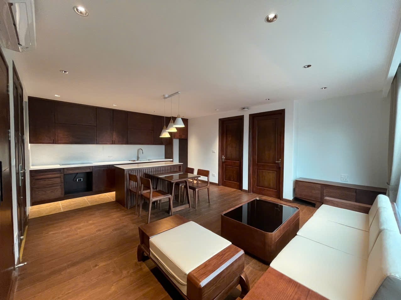 Located on a high floor with a usable area of up to 100m², this apartment offers a prime location just steps from Truc Bach Lake, making it an ideal choice for both tourists and families. The spacious, fully equipped kitchen features modern appliances, while the bright and airy living room, with glass doors, invites abundant natural light. The warm ambiance is enhanced by elegant wooden furniture and a thoughtful layout. Both bedrooms are generously sized, each with a queen-sized bed and a work desk in the corner, creating private and functional spaces. The luxurious stone-tiled bathroom adds a touch of sophistication to the apartment’s overall aesthetic.