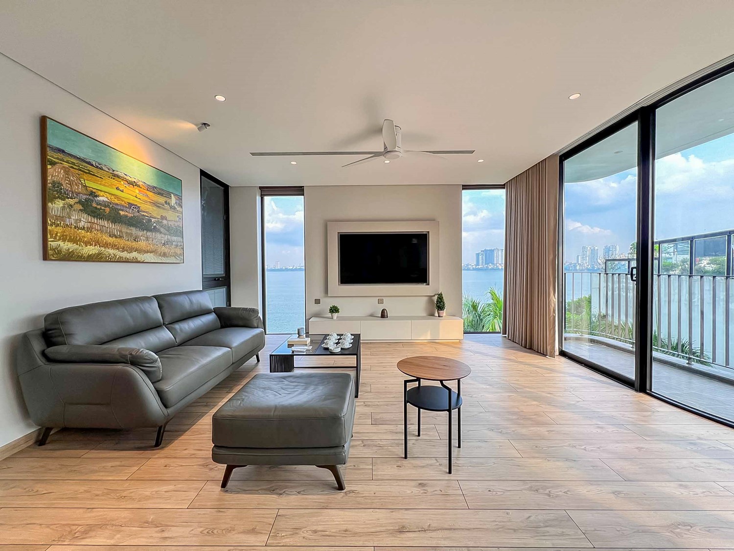 Super beautiful serviced apartment for rent on Quang Khanh street, area 140m², located on the 6th floor of the building. The apartment includes 3 bedrooms, 2 bathrooms, and an airy balcony facing West Lake, with beautiful lake views at sunrise and sunset, helping you feel a peaceful life. Large glass doors help the apartment always be filled with natural light, providing a comfortable living space and close to nature.