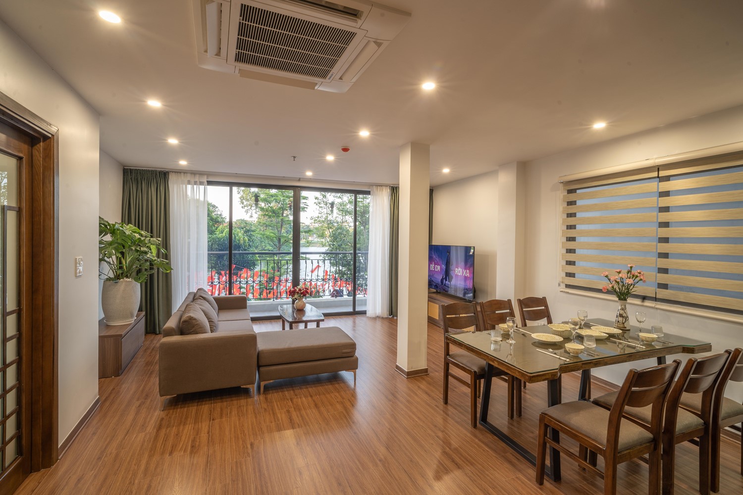Covering 120 m², the apartment features a bright open-concept living area with floor-to-ceiling windows, flooding the space with natural light and offering a refreshing view of West Lake.