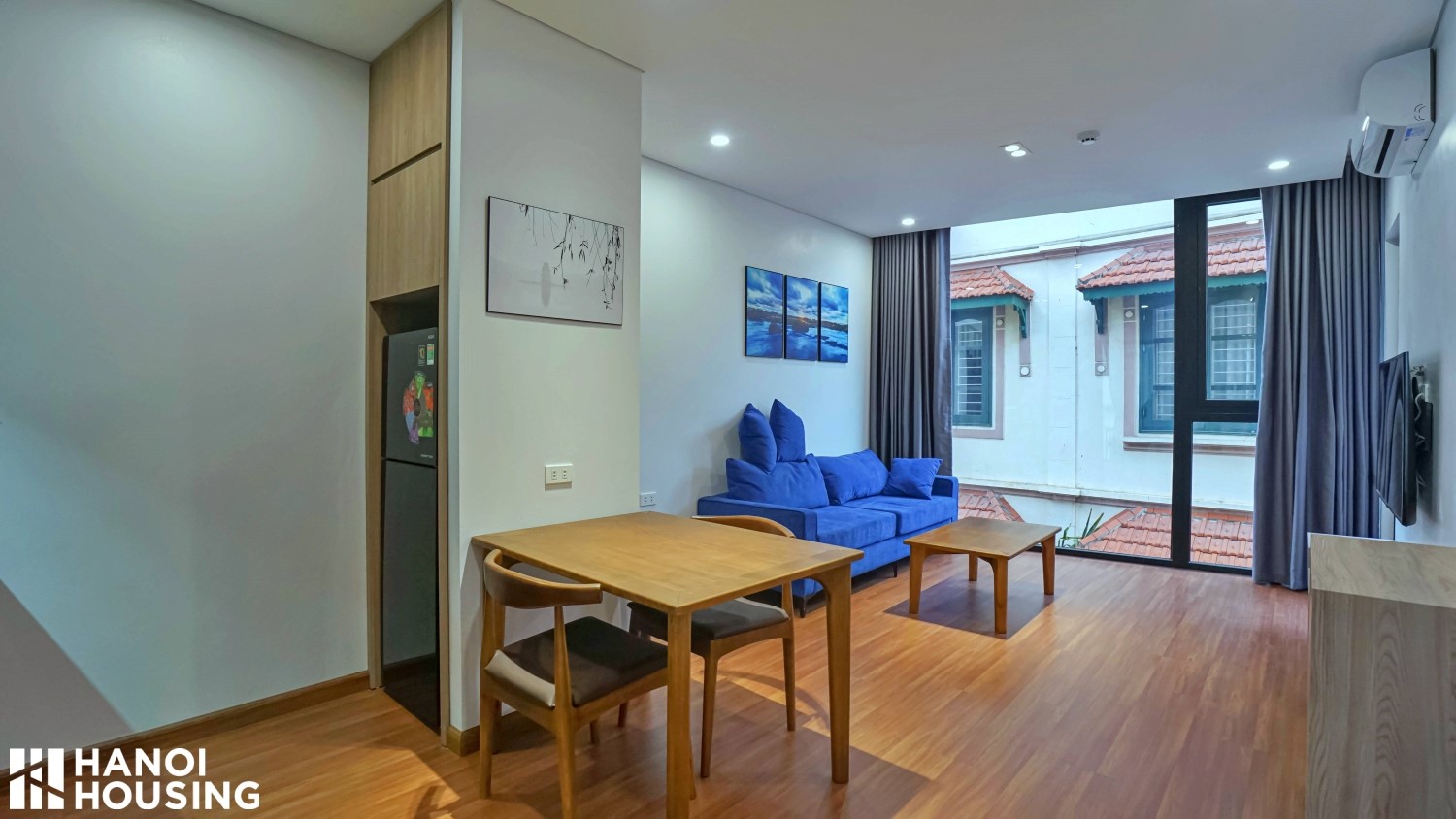 This cozy and bright 55 square meter one-bedroom apartment on Xuan Dieu Street offers a comfortable and stylish living space. The apartment is fully furnished with modern amenities, making it ideal for individuals or couples.