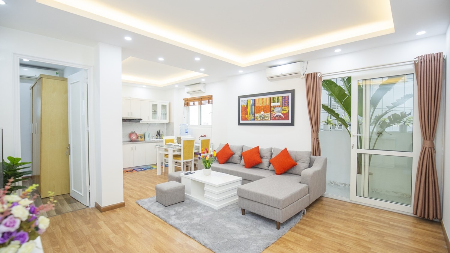 Cozy 2 bedroom apartment located on Dao Tan street, Ba Dinh District, Hanoi. Short walk to Lotte Center, Embassy of Japan. The location is convenient as it has an easy access by cars and there are a lot of restaurants and shops nearby. The building has an elevator, 24/7 security and motorbike parking.