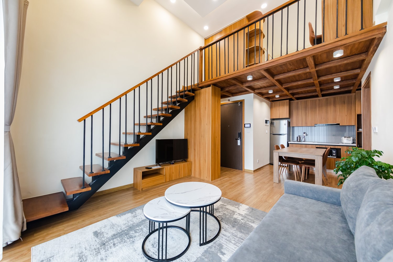 Introducing a stylish duplex 1-bedroom apartment with elegant decoration, available for rent now in the sought-after area of Tay Ho. This unique apartment offers a perfect blend of modern design and cozy living, making it an ideal choice for individuals or couples looking for a charming home.