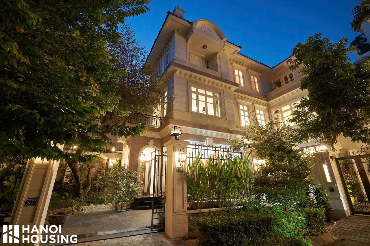 This luxurious garden villa offers a high-class living space, blending elegance and nature. With its exquisite design, the villa exudes an enchanting beauty, perfect for those seeking tranquility in the heart of the city. There is a lush garden courtyard where the plants are harmoniously arranged, creating a sense of closeness to nature. The outdoor decorative lights do not only provide warm illumination but also highlight the classic architecture with soft arch details and artistic iron railings.