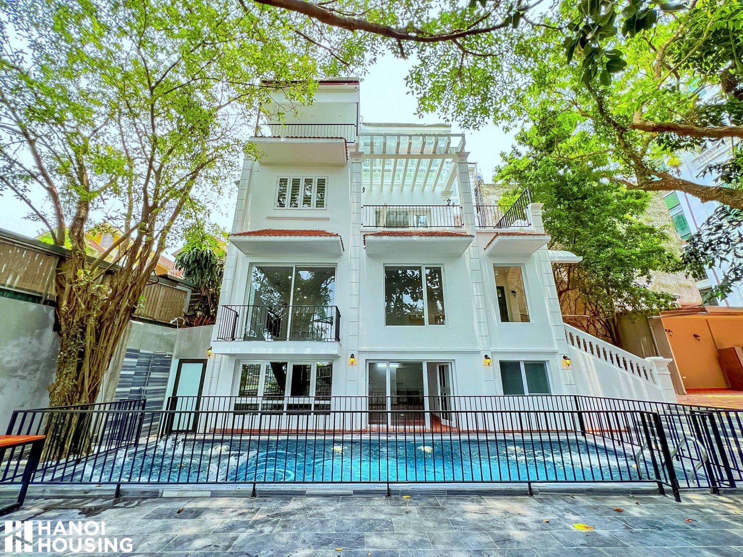 This newly renovation villa (2024) is located on Au Co Str, Quang An Area. Here is one of the top options for a family in Tay Ho. There are 4 bedrooms, private swimming pool and especially the lake view which does not have in most of houses in Tay Ho. Besides, the design is suitable for the tenants who love the natural light with big and thick window in every room. The furniture was set up with modern devices and make the living much more convenience.