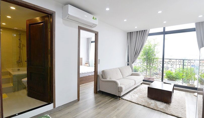 Fully furnished and equipped 2 bedrooms apartment in Hai Ba Trung district to rent. Gorgeous open plan kitchen and living area leading to open 2 large window idea for sunset entertaining. Light, bright and quaint apartment boasting 2 bedrooms, 1 bathroom and plenty of storage space, it is suitable for a family living or a couple. The apartment looks out to the city of Hanoi with a green tree around.