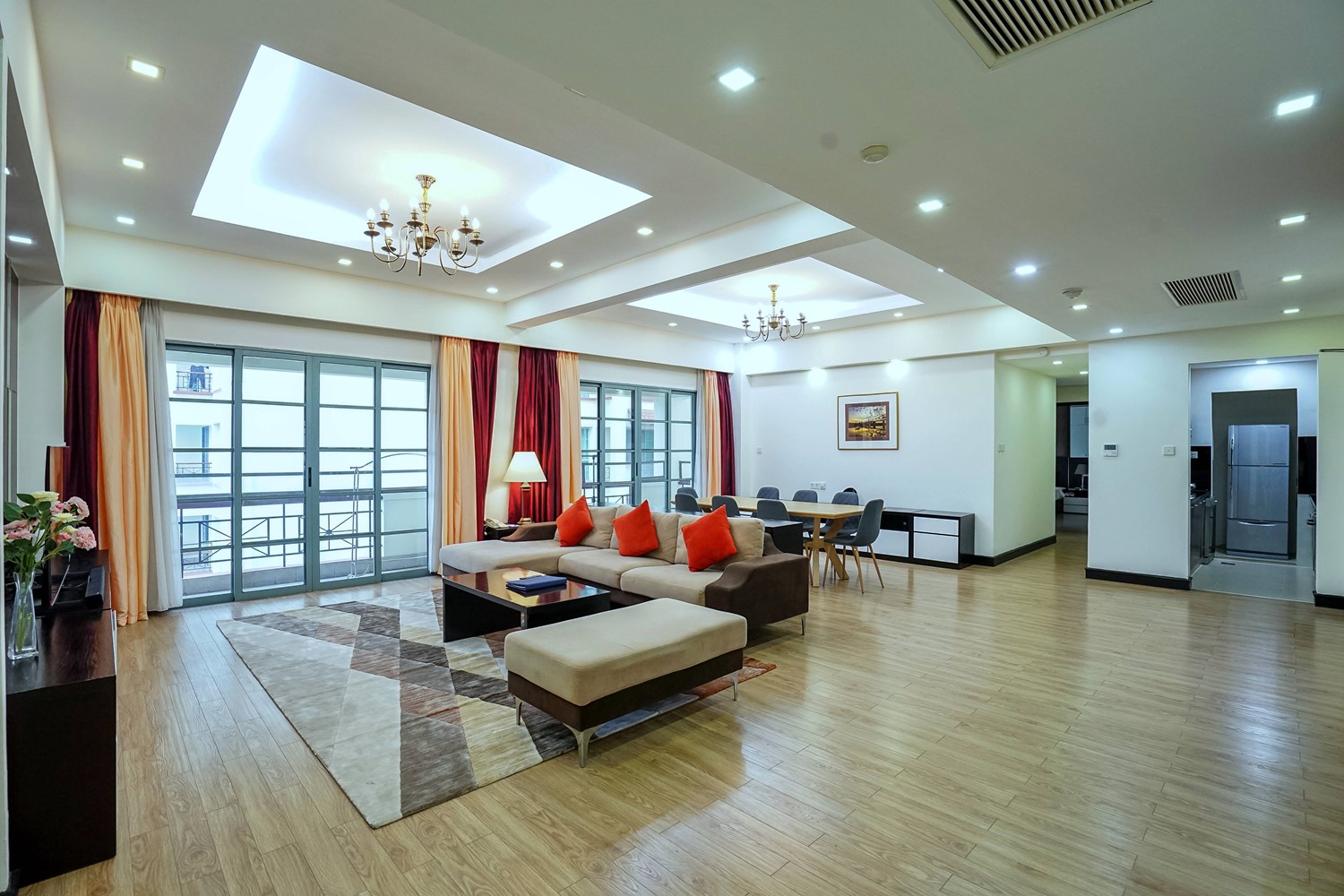 This impressive 4-bedroom corner apartment, located in the sought-after area of To Ngoc Van Street, Tay Ho, offers both a stylish living space and an outstanding rental opportunity. At 182m², this thoughtfully designed apartment combines two separate 2-bedroom units, each measuring 91m², to create an expansive, well-appointed living environment.