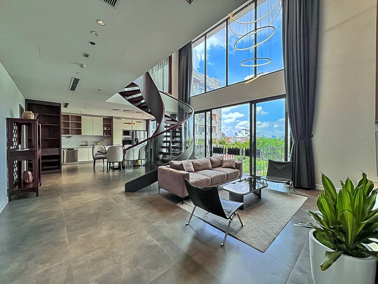 Impressed design duplex penthouse 3-bedroom apartment for rent in Tay Ho area, Hanoi