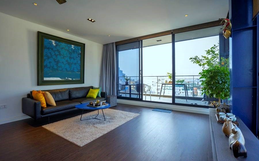 This modern apartment for rent is on the top level in a 9-storey building located on To Ngoc Van street. It was built in 2020, fully furnished and equipped in a modern style. The total living space is up to 85sqm, designed with 1 bedroom, 1 bathroom. The living room is full of natural light and comes with a spacous balcony where you can enjoy the view anytime.