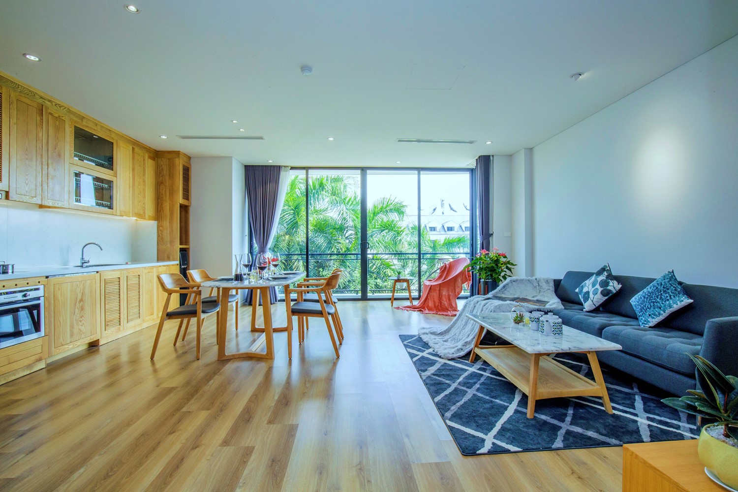 This charming apartment is located in Tay Ho, nearby Sheraton Hanoi Hotel, InterContinental Hà Nội Westlake. The total living area is 100 sqm, designed with 2 bedrooms, 1 bathroom. The owner provided fully good quality furniture, you do not need to buy anything and just need to move your private things into the apartment for a living. The living room is very bright, has a nice balcony. The kitchen is well equipped with electric cook, refrigerator, electric oven, microwave, dish washer, water dispenser,...