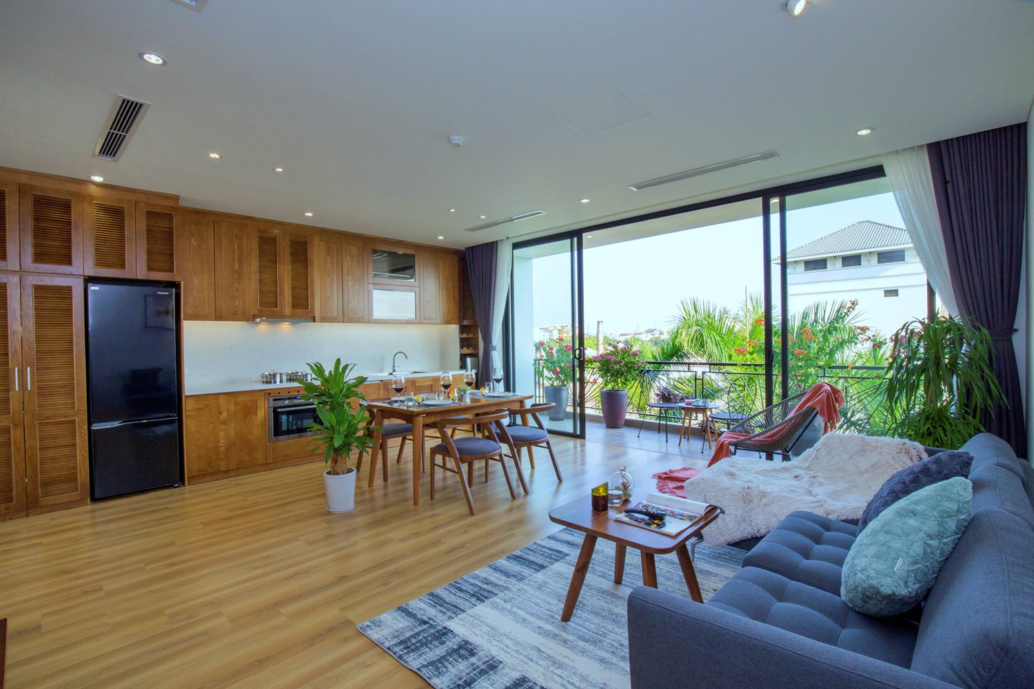 The apartment is on the 5th floor with a nice view. The total living area is 110 sqm, designed in modern style, composed of 2 bedrooms, 2 bathrooms, provided fully with high quality furniture and equipment. It is located on Tu Hoa - one of the most beautiful streets in Tay Ho with a walking distance to Xuan Dieu street where you can find many restaurants, shops, gym, shopping mall,...