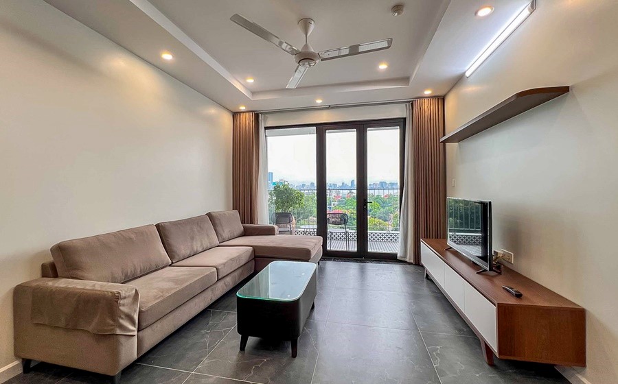 Spacious apartment for rent on the 5th floor, Nghi Tam street, Tay Ho, Hanoi with an area of 120m2. The apartment includes 3 bedrooms, 2 bathrooms and a spacious balcony, overlooking the open West Lake. The living room and kitchen are designed with modern, open space, ensuring convenience and comfort for residents. This is the ideal choice for families or foreigners looking for a peaceful and luxurious place to stay in Hanoi.