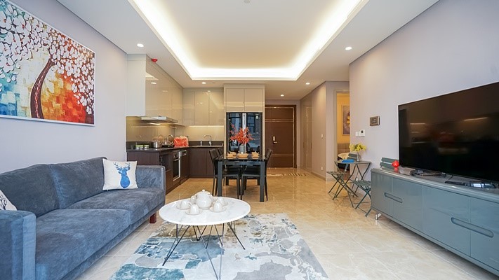 A high-floor, lake-view, premium, and modern 2-bedroom apartment located on Thuy Khue Street, Tay Ho District, offering a fully equipped and luxurious living space.