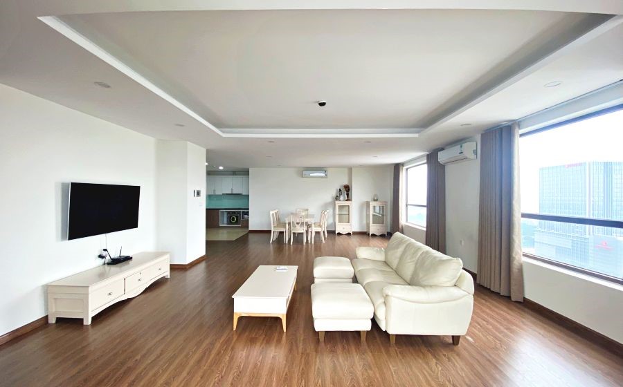 This 168 sqm, 3-bedroom apartment in UDIC Westlake offers a stylish and spacious living space. The open-plan layout is bathed in natural light, creating a bright and inviting atmosphere ideal for families or professionals. Situated in a prime location near Lotte Mall Tay Ho, the apartment provides unparalleled convenience to shopping, dining, and entertainment.