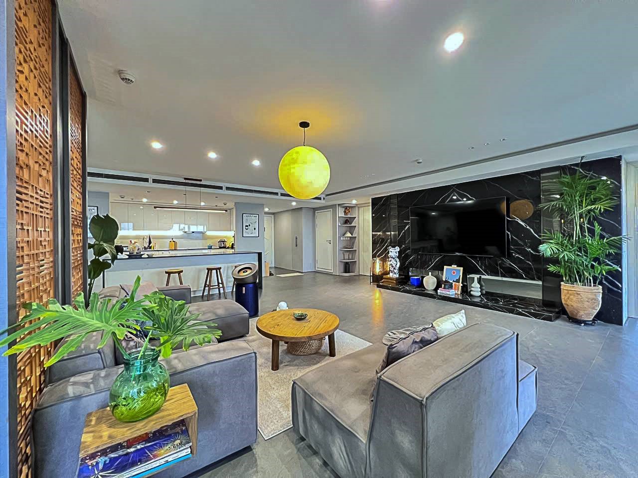 Step inside to a beautifully designed open-plan living area, fearturing plush sofas, stylish TV cabinet and large windows that bring in plenty of natural light. The contemporary dining space is separated with wooden decorative panels, adding both privacy and charm. The sleek fully equipped kitchen comes with high-end appliances including a refrigerator, electric oven, induction cooker, microwave, dishwasher and ample storage - perfect for home cooking. With 3 bedrooms including a master with dressing table and ample wardrobes and bathrooms featuring a bathtub, the apartment offers comfort for both family living and professionals.