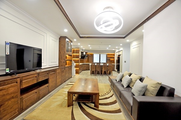 The apartment for rent is on 7th floor of a 9-storey building located in Bui Thi Xuan street, Hai Ba Trung district which is 10 mins away from the Vincom Tower, close to many restaurants and everything you need for your daily life. The apartment features mordern and luxurious furniture, equipment and kitchen appliances. The master bedroom comes with an ensuite bathroom. The 2nd bathroom is outside of the bedrooms, and next to the kitchen. The added bonus of this beautiful apartment is a spacious balcony.