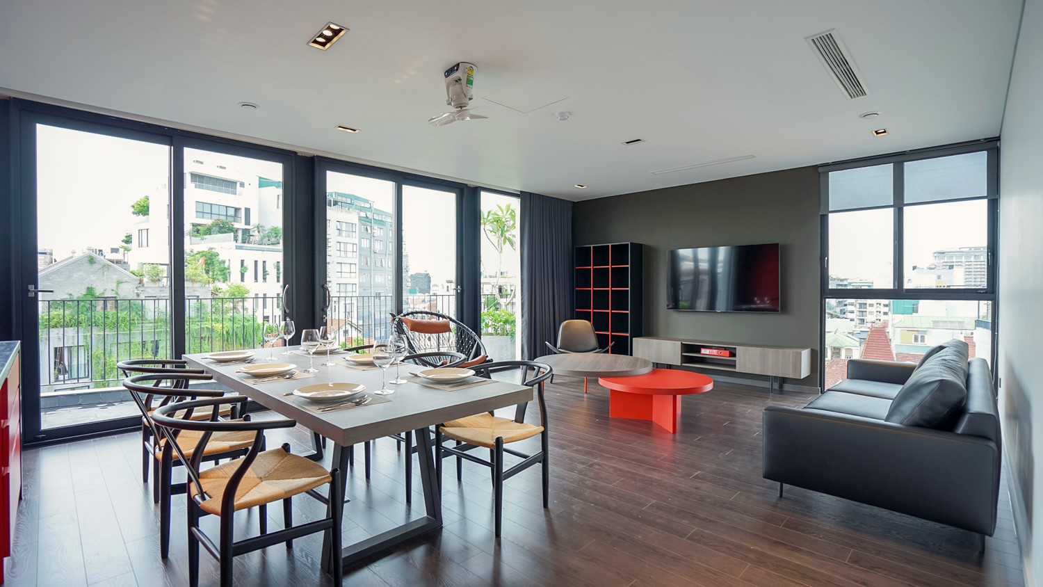 Open view and modern furniture 3-bedroom apartment for rent on To Ngoc Van Street, Tay Ho area