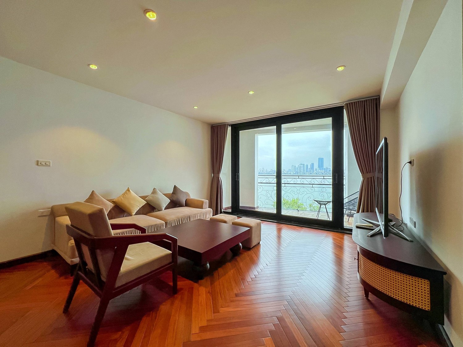Experience refined living in this spacious 180 sqm, 3-bedroom, 3-bathroom apartment located on Tu Hoa Street, Tay Ho. Designed in charming Indochine style, this fully furnished home boasts bright and airy interiors, blending traditional elegance with modern comfort. Enjoy stunning lake views from the expansive living spaces, perfect for relaxation or entertaining. Centrally located, this apartment offers easy access to West Lake, cafes, restaurants, and all the vibrant amenities of Tay Ho. Ideal for families or professionals seeking a sophisticated and serene lifestyle. Contact us today to schedule a viewing of this exceptional property!
