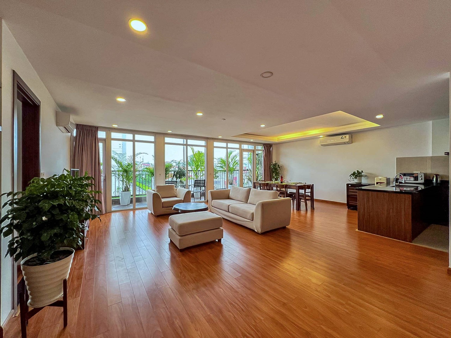Luxury apartment on the 7th floor, area 180m2, located on Tu Hoa street, Tay Ho, Hanoi. With open space, the apartment is equipped with 3 bedrooms, 2 bathrooms, and a view of the green space. The living room is spacious, bright with large glass doors, airy and comfortable. The kitchen area is modern and comfortable, promising to bring a classy and convenient life to residents.