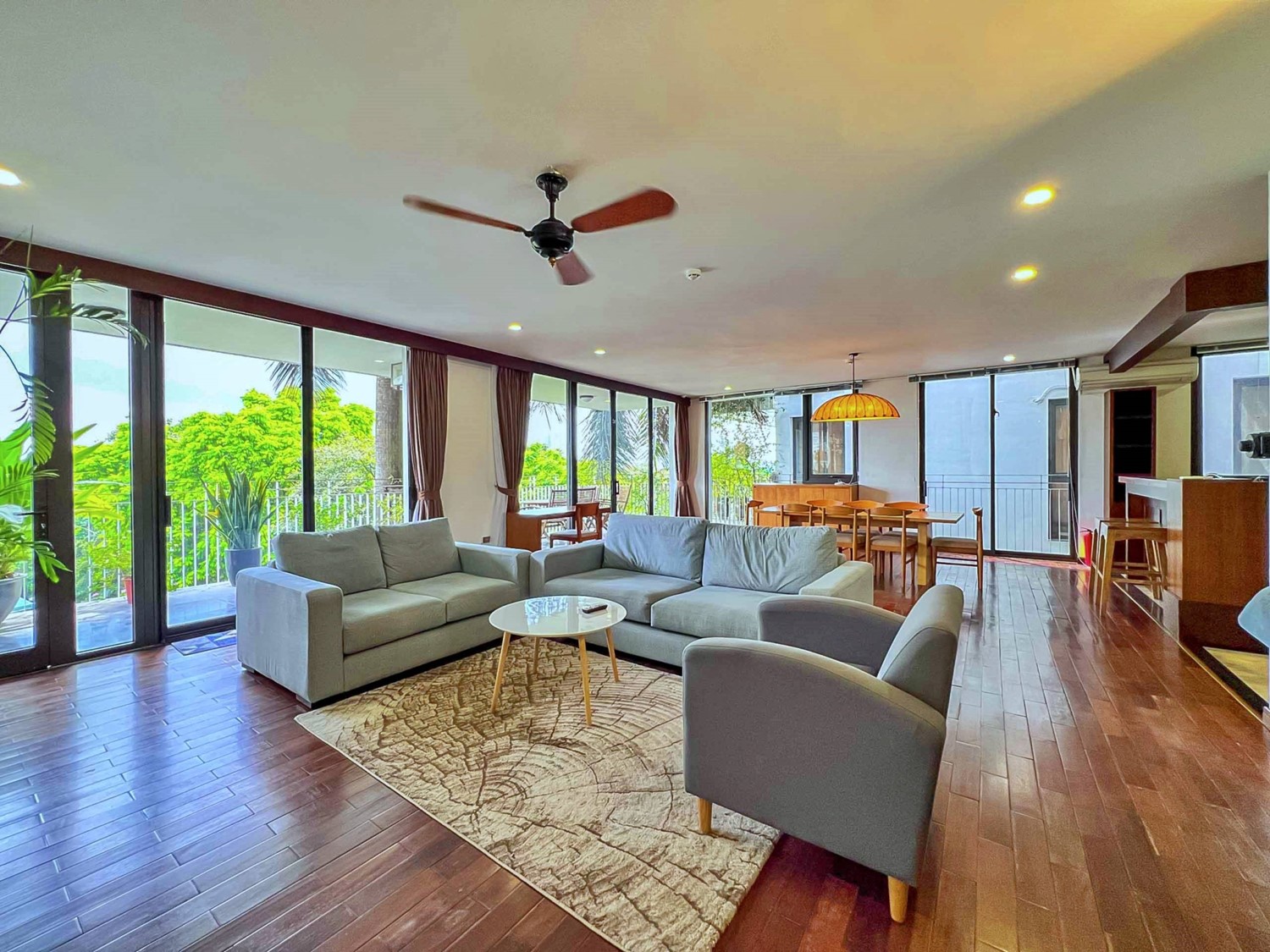 We would like to introduce a modern apartment in Quang Khanh street, Tay Ho, Hanoi with an area of up to 250m². The apartment is located on the 4th floor, with 4 bedrooms and 3 bathrooms, meeting the needs of large families or groups of friends. With a large balcony and open view, the apartment offers an airy and comfortable living space.