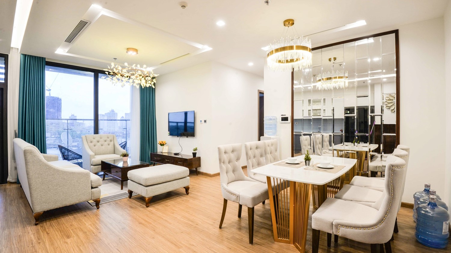 The 3-bedroom apartment in Vinhomes Metropolis offers an open-plan living area, a state-of-the-art kitchen, and three sizable, cozy bedrooms. The ample living space ensures a comfortable abode for families or individuals who appreciate a touch of luxury.