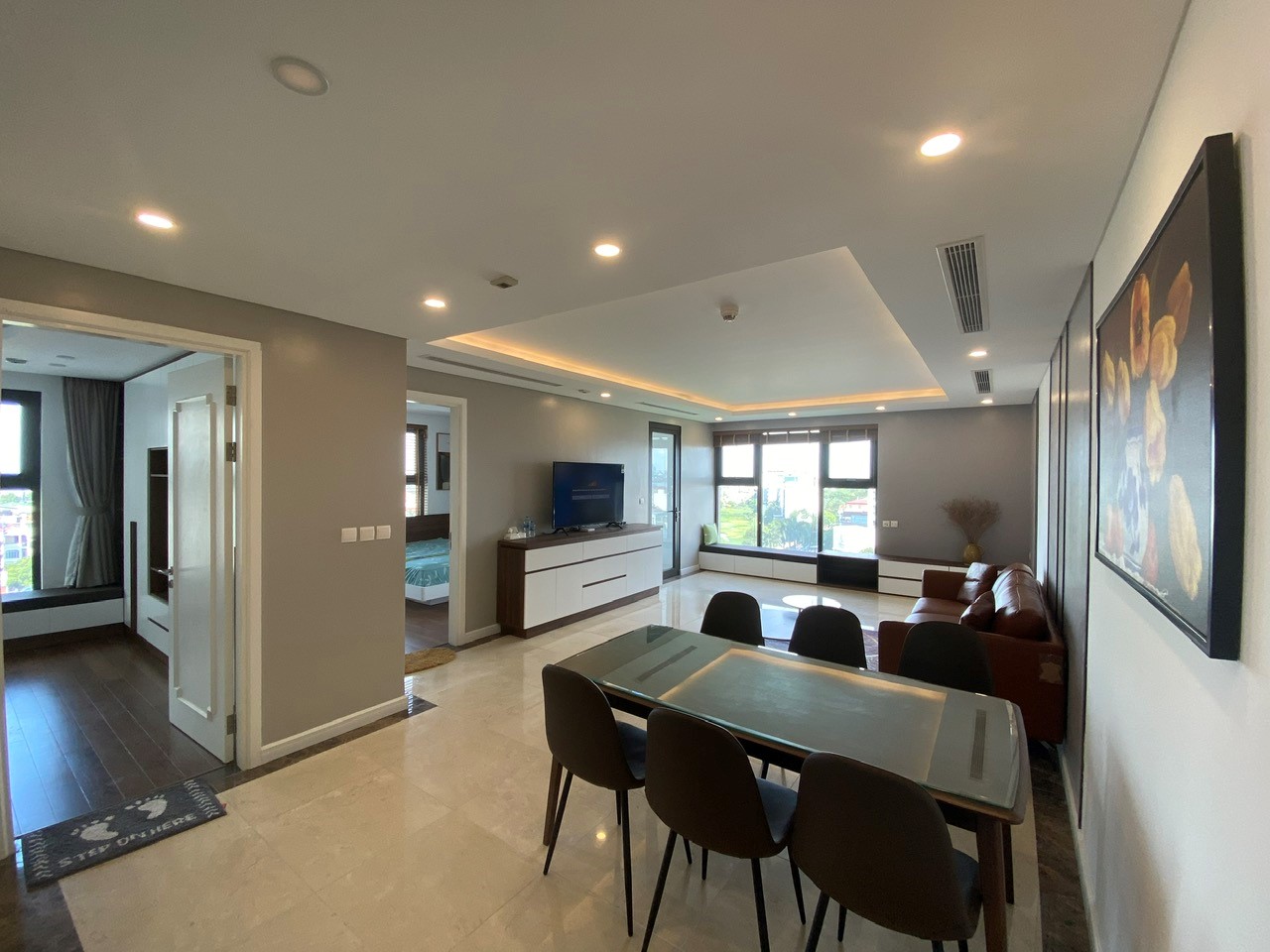 Step into modern luxury with this impeccably designed 2-bedroom apartment in the prestigious D'. Le Roi Soleil building, located at 59 Xuan Dieu in Tay Ho, Hanoi. Spanning 116 sqm of intelligently planned space, this residence offers a luminous open-plan living and dining area that exudes sophistication and style. The apartment features two well-proportioned bedrooms complete with built-in wardrobes, providing both comfort and ample storage.