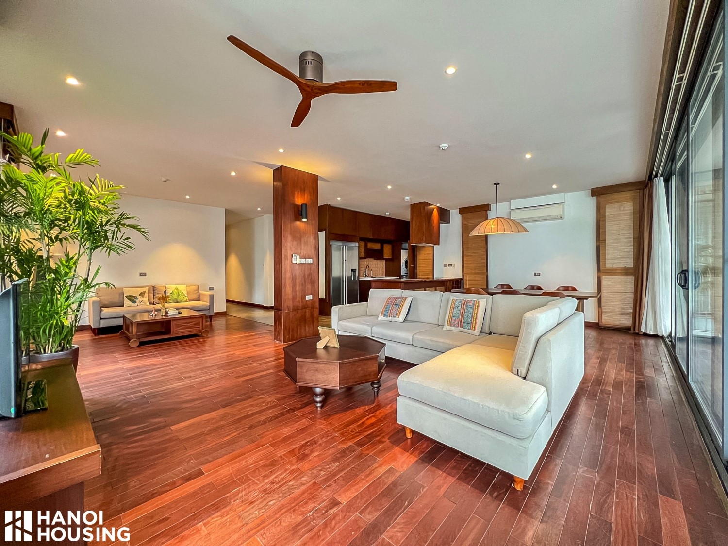 We would like to introduce a modern apartment in Quang Khanh street, Tay Ho, Hanoi with an area of up to 220m². The apartment is located on the 4th floor, with 4 bedrooms and 3 bathrooms, meeting the needs of large families or groups of friends. With a large balcony and open view, the apartment offers an airy and comfortable living space.