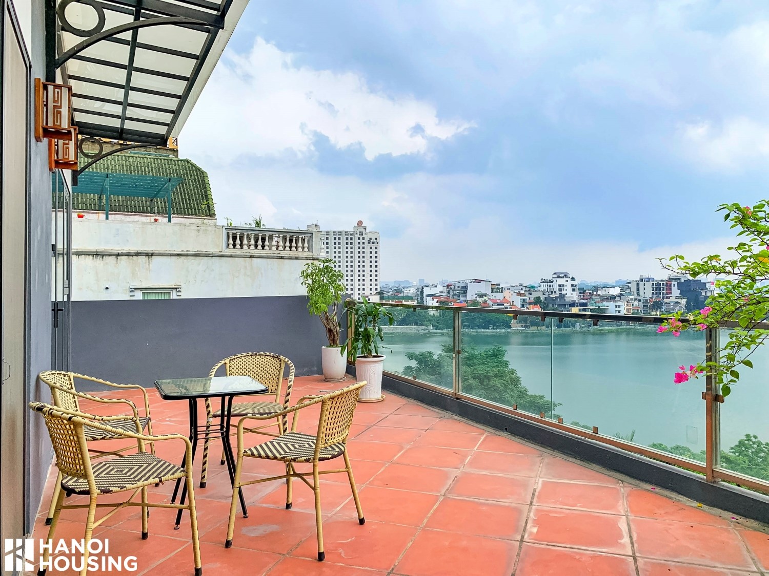 This modern apartment is located in Tay Ho, nearby Sheraton Hanoi Hotel, Syrena Shopping Center. It is on the top floor with a spacious balcony where you can enjoy your coffee in the mornings. The total living area is 120 sqm, designed with 2 bedrooms, 2 bathrooms. The owner provided fully good quality furniture, you do not need to buy anything and just need to move your private things into the apartment for a living.